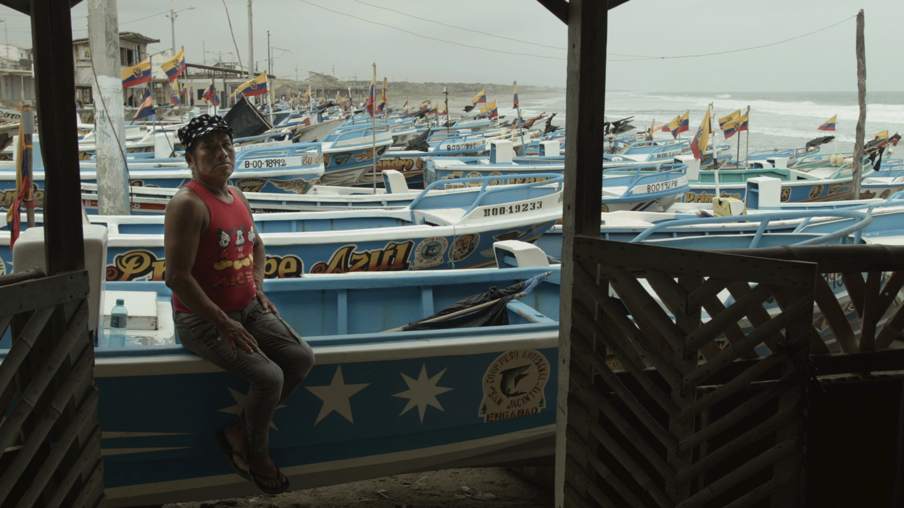 Vicky is a fisherman by day, and barwoman by night. Her bar is located on a windy beach of Enchaquirados, in the coastal town of Engabao in Ecuador. When she was a boy, she fantasised about becoming a telenovela star, but now she dreams of falling in love again. Brimming silences, loud voids and sporadic catches of fish make up the atmosphere of her life, imbued with unfulfilled desire. But the beach of Enchaquirados also glows with an irresistible and liberating warmth. Vicky belongs to the local trans-community in which gender and sexuality are experienced in their enchanting fluidity, inherited from indigenous tribes. As we watch her manoeuvre and flirt with clients, crushes, passersby and surfers, we wonder how it is possible that this isolated fishing society in a third world country has achieved such unique freedom and tolerance. But then we realise we are slaves of our own western stereotypes. Sexual diversity formed a major aspect of culture and rituals of their ancestors, the people of Huancavilca, before the Spanish colonisation brought repression. The camera follows the social life of a fishing town, its high suns and sunsets, lulling us in with its stylized frames and meditative tempo, catching Vicky in her natural environment balancing between demanding physical labour at sea and feminine elegance she aspires to in her private life. These two worlds are seemingly opposed, but Iván Mora Manzano succeeds at portraying both with equal charm and affection – from giggly flirtation to painfully honest conversations about her unfulfilled life, from abandoned beaches to the boiling carnival season. The Beach of Enchaquirados demonstrates how the communal spirit contributes to individual resistance to difficult working conditions and failed hopes. Compañera Vicky knows that life can indeed be a sweet dream, despite its bitter awakenings. (DP)